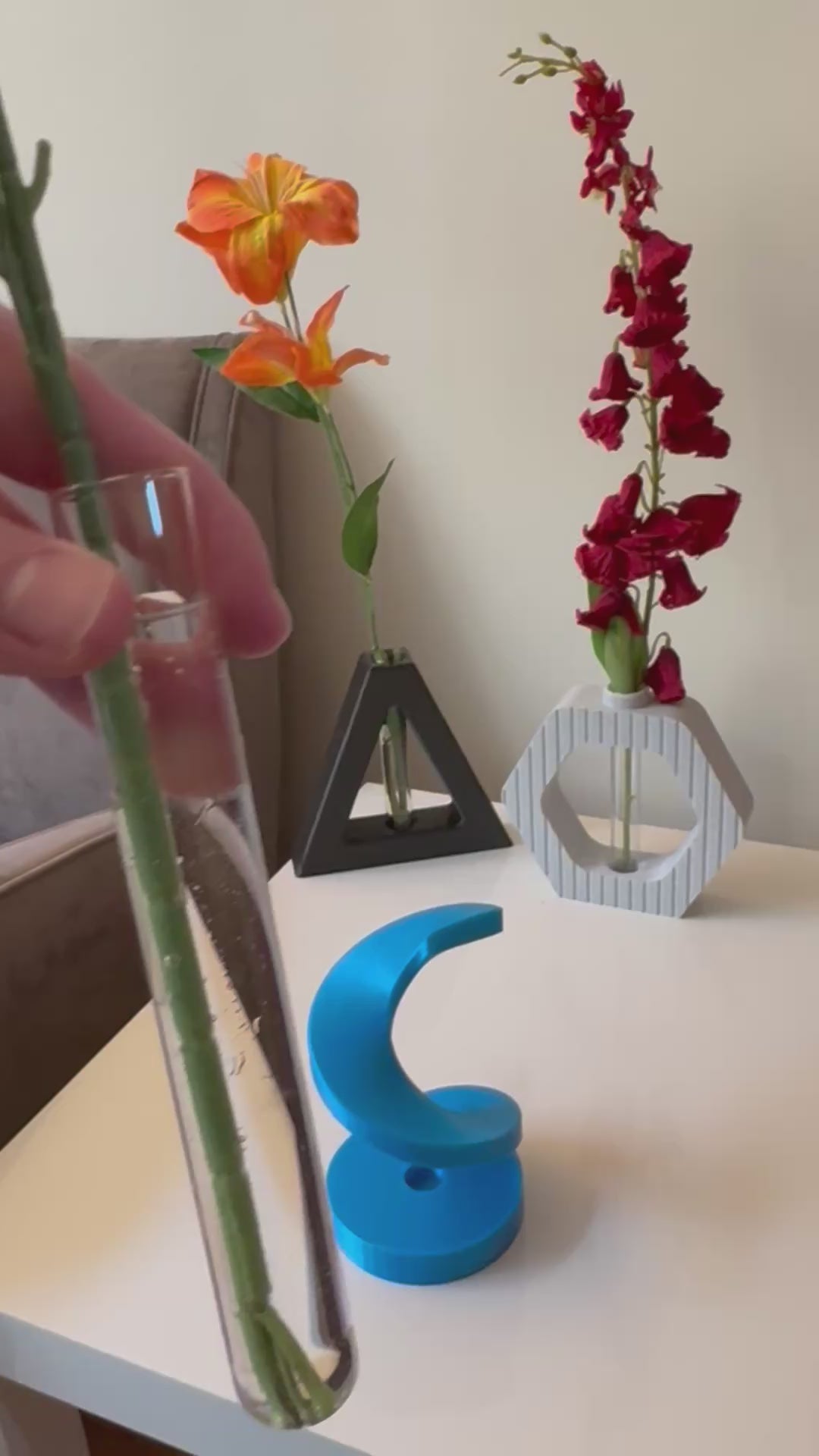 Vase à fleur Soliflore SPIRALE - Imprimé en 3D avec tube en verre